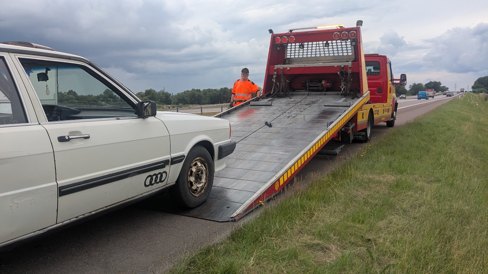 This is my Audi 80. I bought it on 01/08/25 in Norrköping. On the way back, a coolant hose that had been used to bypass the heatercore exploded, throwing out all the coolant. This resulted in me being stranded on the side of the road, with a potentially cooked engine. I had to get it towed.