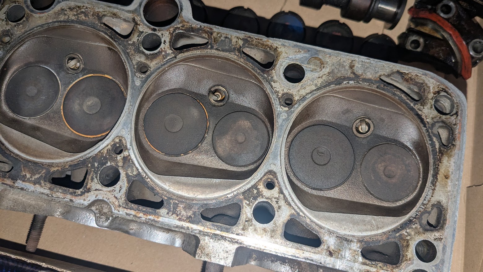 This one unfortunately had some broken off exhaust studs, which was a massive pain to drill out. With it all said and done, I reassembled the engine and tried to start it, which didn't go very well. It would crank and fire, but then would slow down to a crawl. I deduced that it was timing related and found out after many hours that the distributor was installed backwards... After changing it back to stock, the engine fired right up! Now I only had to fix the terrible idling and misfires...